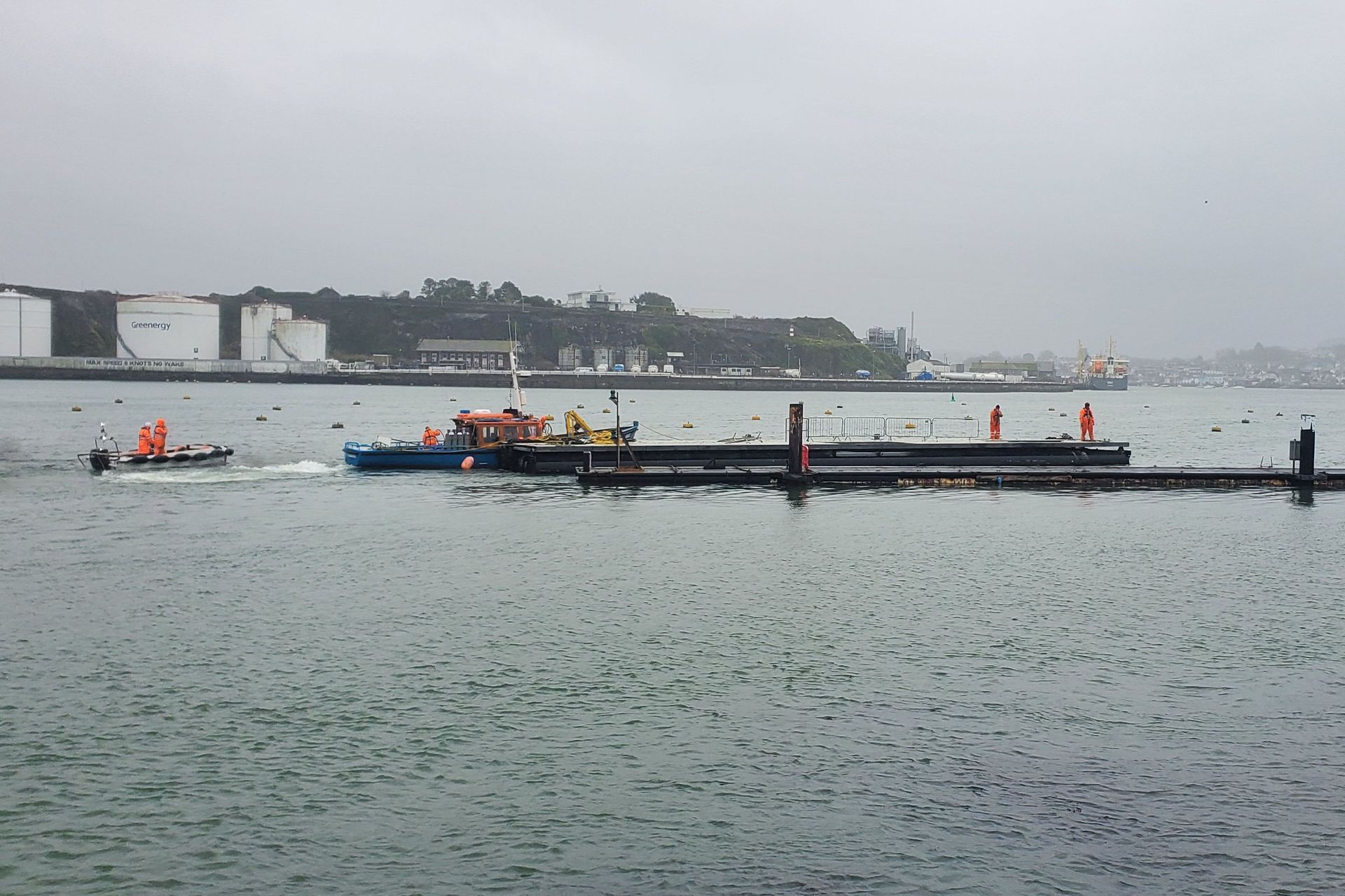 Temporary pontoon for the western slipway arrives on site.