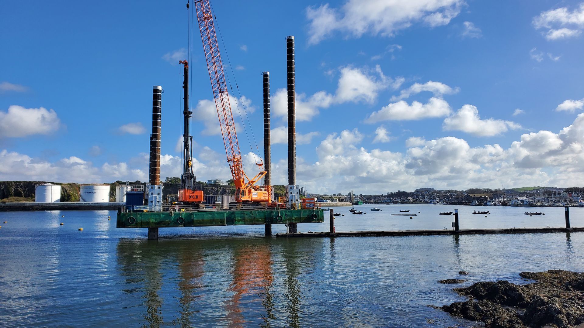 The jack-up barge is in place to drive piles for the new MBC pontoon.