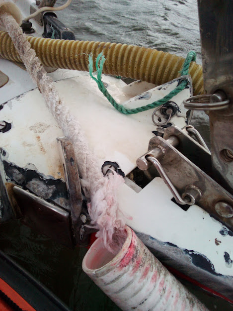 2. Frayed lines: This is usually due to insufficient chafe protection or a poor lead through a fairlead. Note that a line may be fine for weeks but can fail very quickly in bad weather.